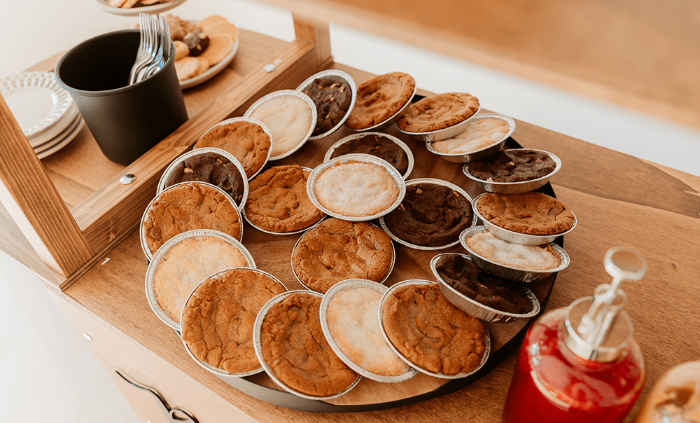 Keuze uit 3 heerlijke soorten koekjesbodems die tijdens jouw feestje door je gasten worden afgewerkt naar eigen keuze met de sausjes en toppings. Er worden steeds 4 soorten sausjes en 5 soorten toppings voorzien.