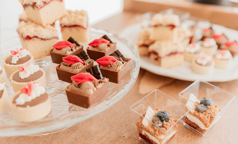 Een heerlijk dessertbuffet met mini’s dat je zelf kan samenstellen. Je kiest je eigen favorieten uit de mogelijkheden en hier wordt een mooi geheel van gemaakt. Uiteraard worden enkele sweets mooi gepersonaliseerd.