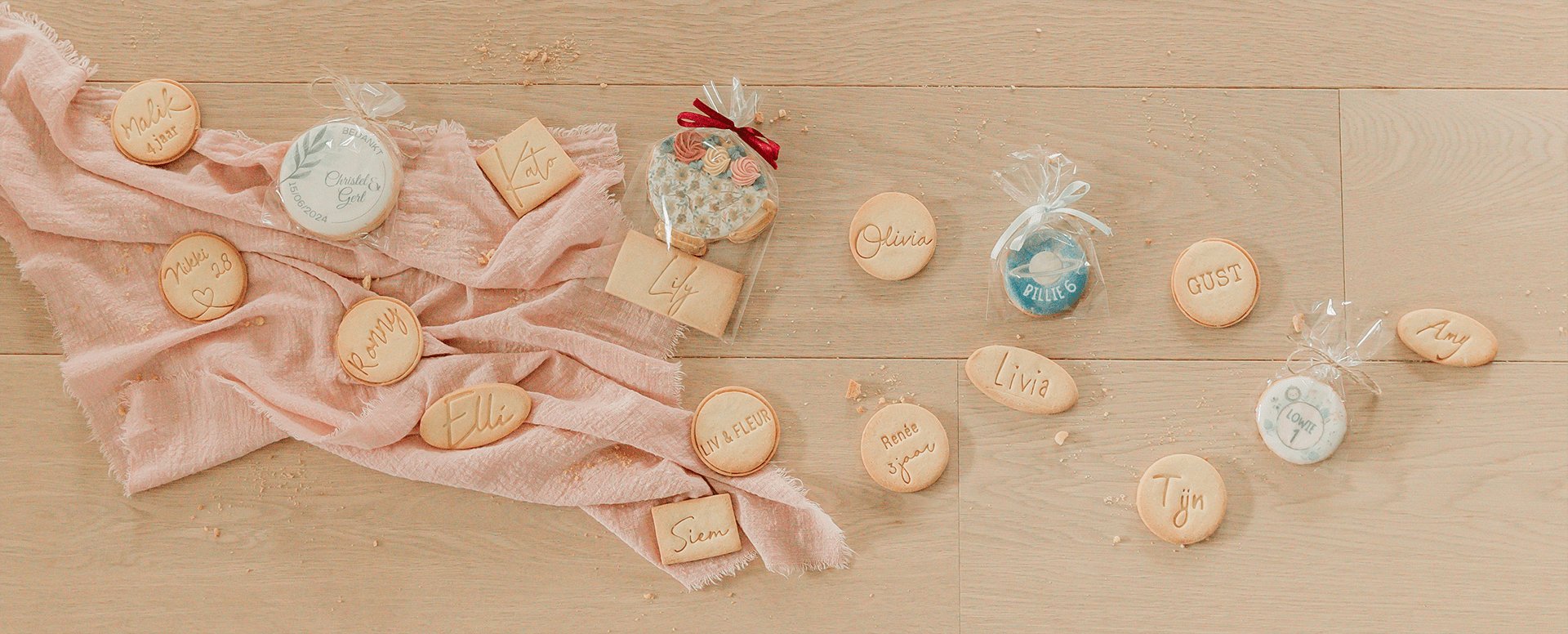 Op zoek naar een uniek en persoonlijk geschenk? Mijn koekjes zijn perfect als doopsuiker, bedankjes of uitdeelgeschenkjes. Met zorg gemaakt en prachtig verpakt, zorgen ze voor een smaakvol aandenken aan jouw speciale gelegenheid. Een klein gebaar met een grote betekenis!